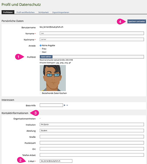 Persönliche Daten und Profilbild ergänzen | ||||||||||||||