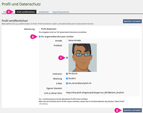 - Machen Sie Ihr Profil und das Bild für andere Nutzer sichtbar.