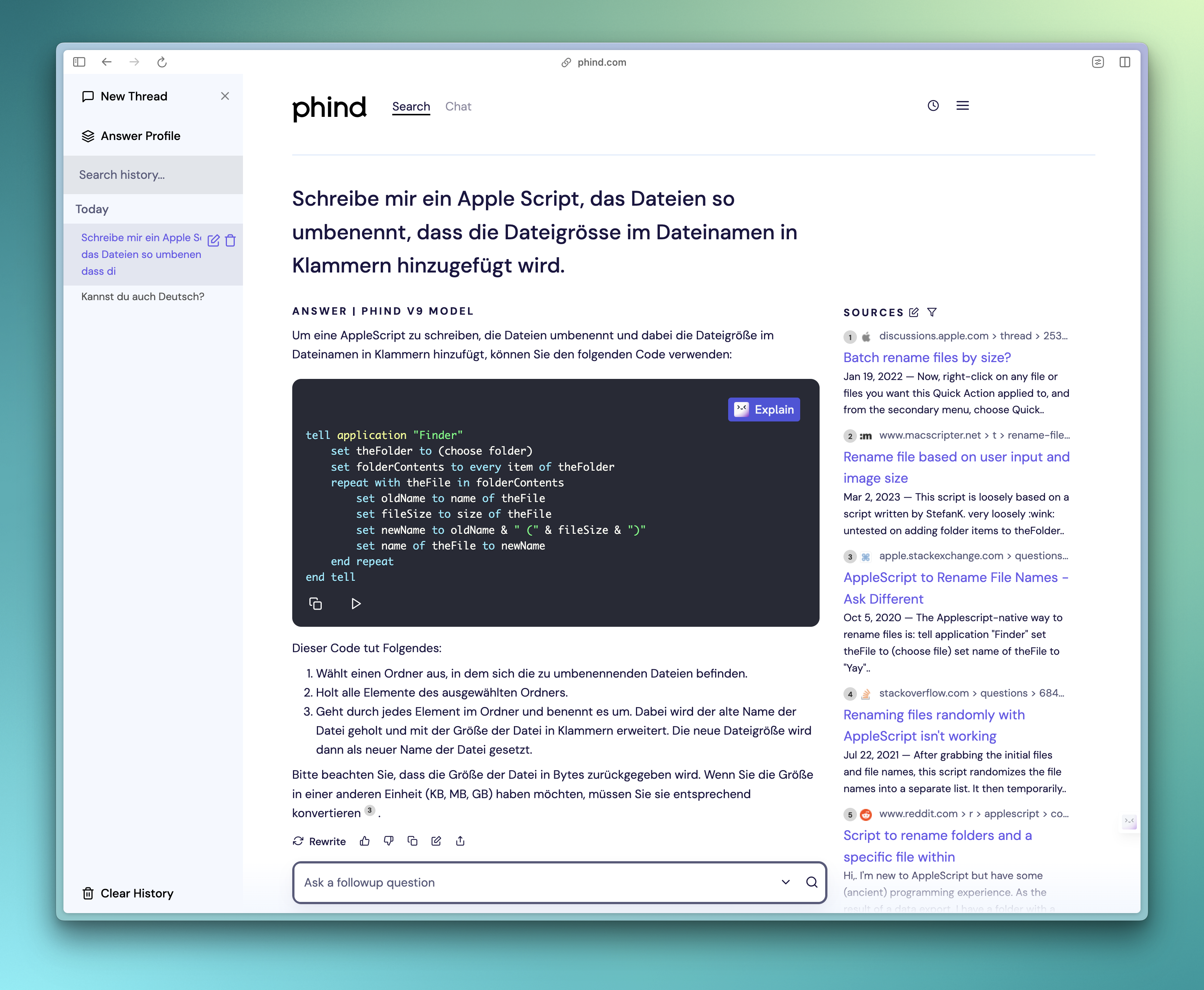 Phind AI ist aber auch eine nützliche Suchmaschine, die ähnlich wie Perplexity AI Quellen zu ihren Antworten liefert. Mit einem Pro-Account für ca. 10.– Fr. pro Monat kann auch GPT-4 genutzt werden.