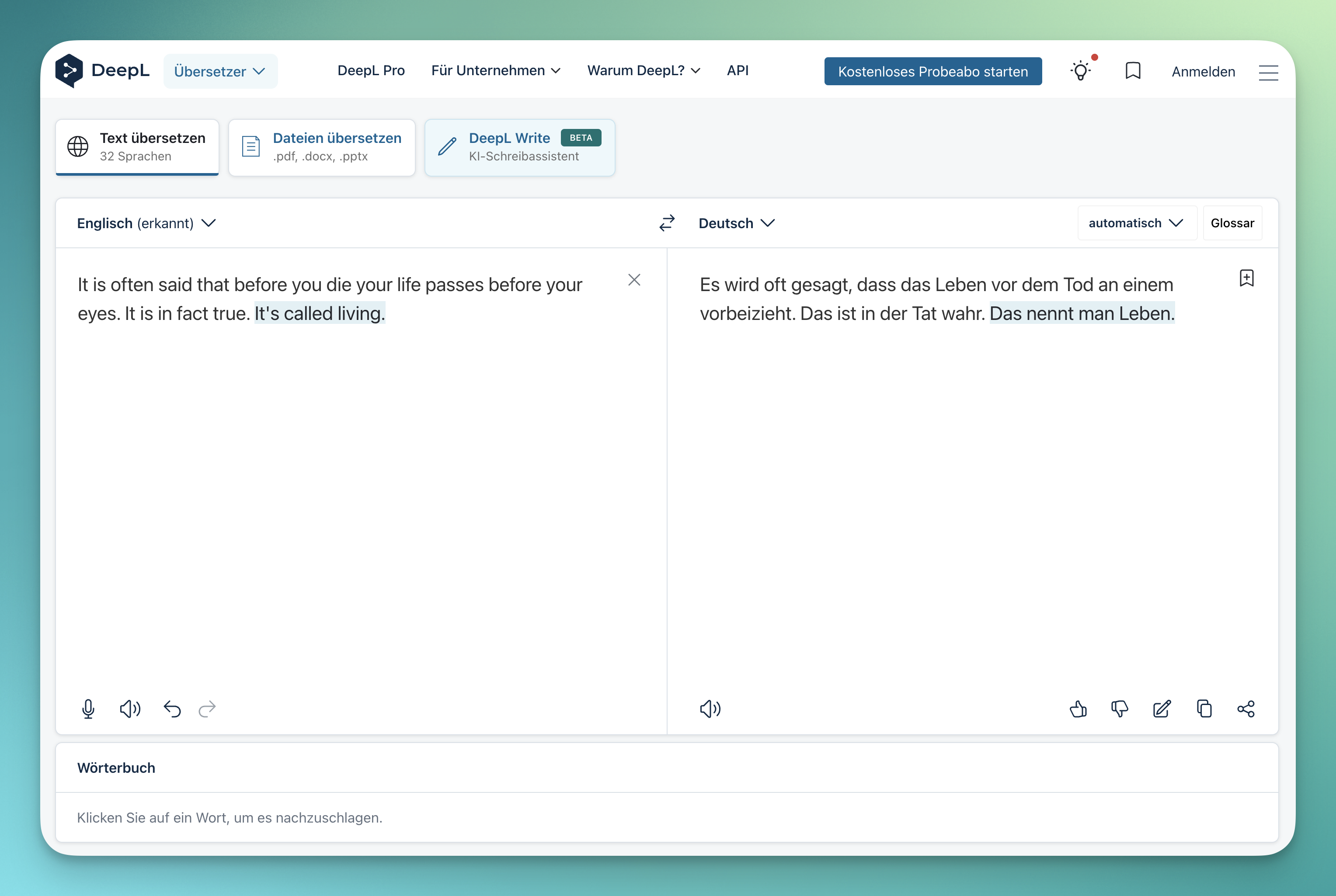Zusätzlich können mit DeepL Word-Dokumente (.docx) und Powerpoint-Präsentationen (.pptx) übersetzt werden, wobei Fussnoten, Formatierungen und eingebettete Bilder erhalten bleiben.