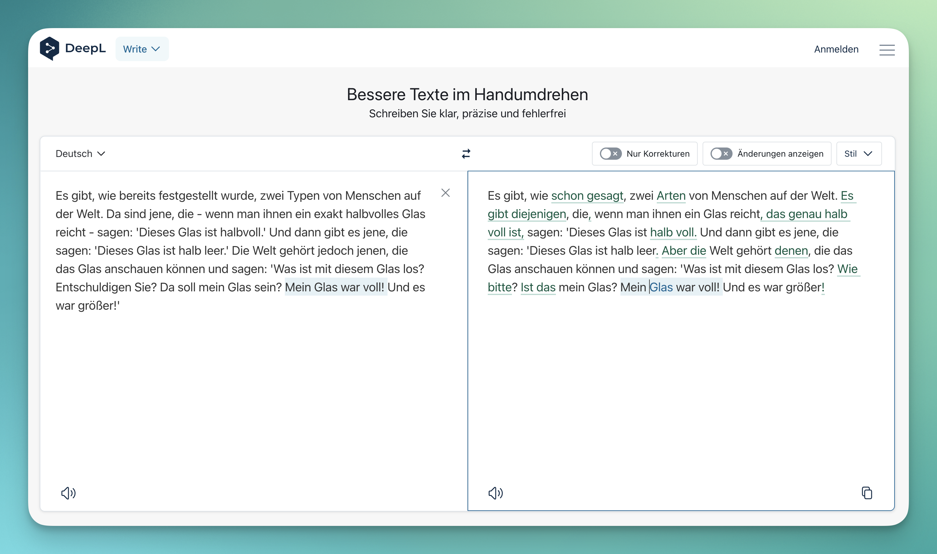 DeepL ist ein Übersetzungsdienst. Wie andere moderne Übersetzungsdienste nutzt DeepL neuronale Netze, die mit vielen frei verfügbaren Textübersetzungen trainiert werden, wobei es ursprünglich auf Convolutional Neural Networks basierte. Heute verwendet DeepL jedoch auch Elemente der von ChatGPT bekannten Transformer-Architektur, allerdings mit signifikanten Unterschieden zu anderen Anwendungen dieser Technologie. Dadurch ist es für Übersetzungen deutlich leistungsfähiger als KI-Chatbots. DeepL Write ist eine zweite Anwendung dieser Technologie, die Texte sprachlich verbessert und für diverse Zwecke umformuliert.