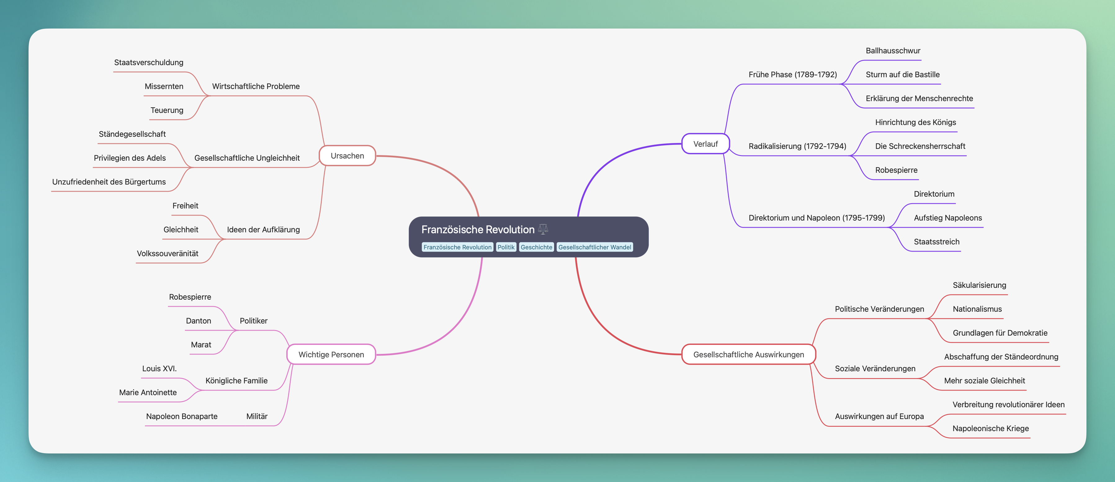 Erstelle eine Mind Map zum Thema 'Französische Revolution' mit Hauptästen zu: