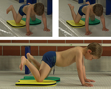 Übungsbeschrieb Im Vierfüsserstand: Arme gestreckt, Hände unter der Schulter, Beine in Froschstellung (angezogene, gegrätschte Beine). Gleichzeitiges und abwechslungsweises Anziehen und Strecken der Füsse (Flex-Point). Fokus