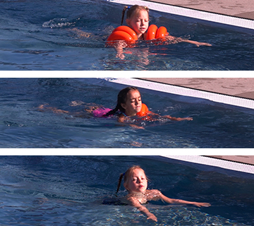 Übungsbeschrieb 4 Schwimmringe (je 2 an jedem Arm). Arm-und Beinbewegungen ohne Pause ausführen (Kopf über Wasser). Die Arme kreisen stetig und geben den Takt an, die Beine folgen dem Rhythmus der Arme automatisch. Nach erfolgreichem Erreichen einer vorgegebenen Distanz darf 1 Ring weggelegt werden, bis «kein Ringli» mehr an den Armen ist. Fokus