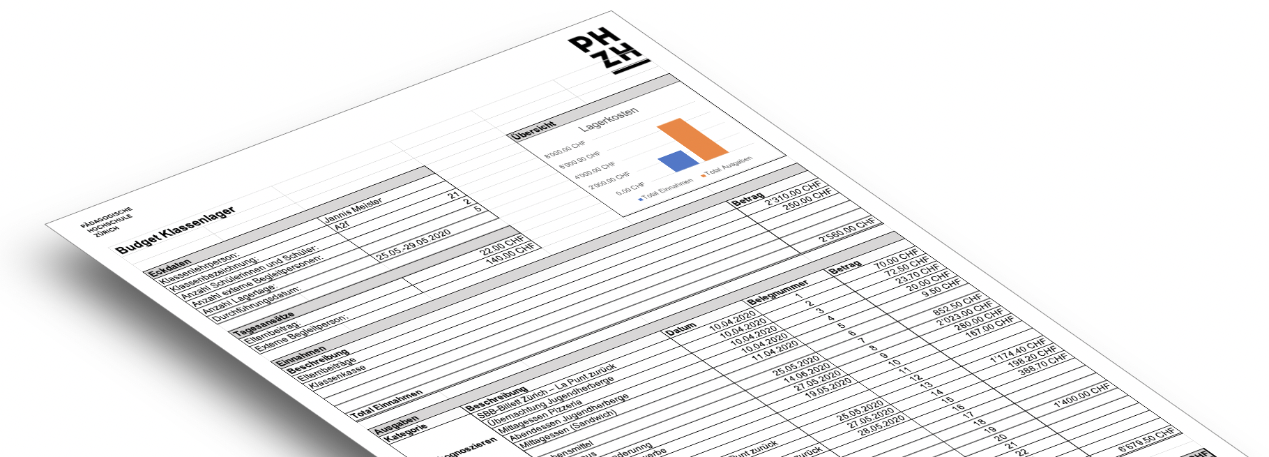 Erstellen Sie eine Budgetvorlage für Klassenlager, die in Ihrem Schulhaus verwendet werden kann.