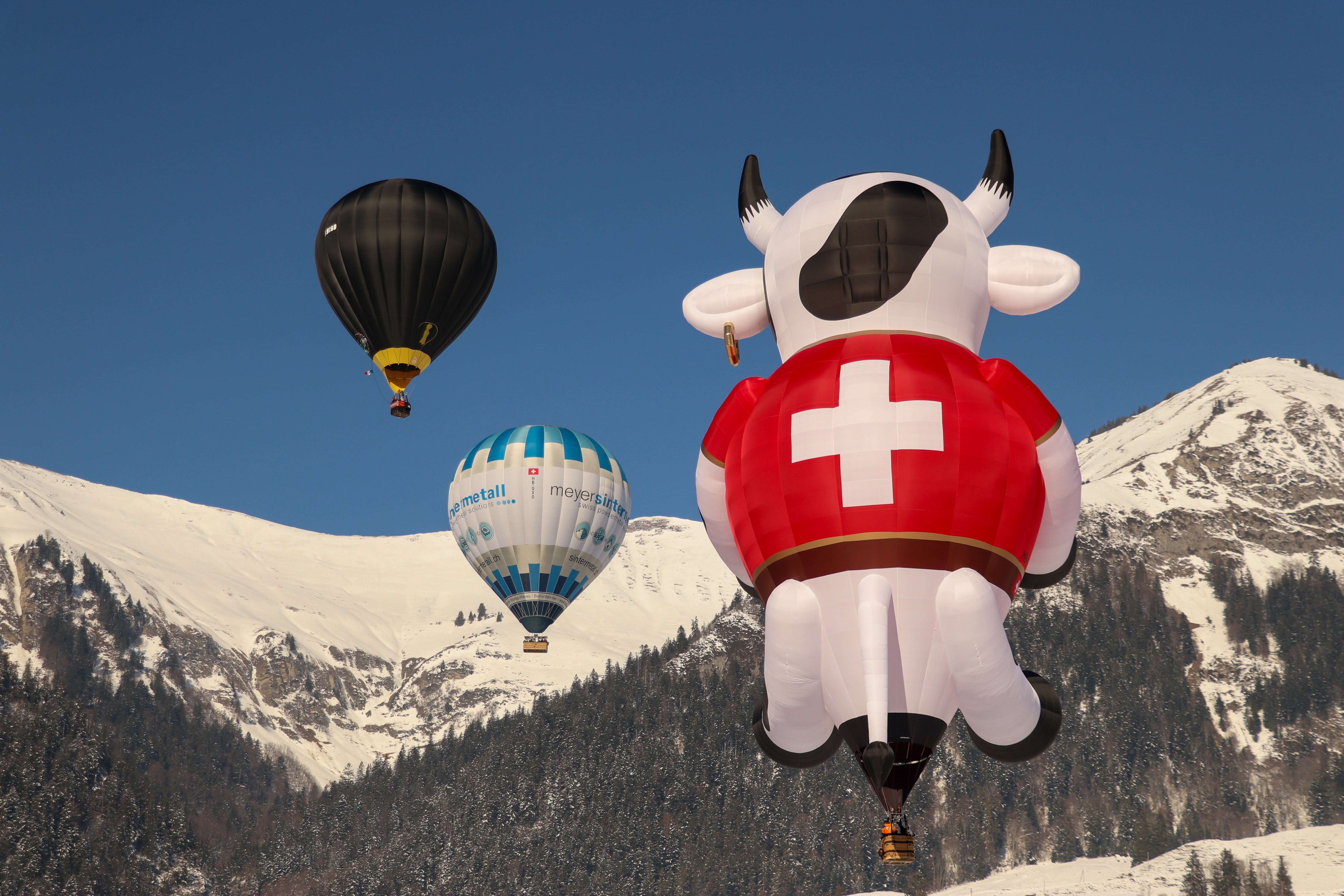 Adobe Stock picture: Hot air balloons in the Swiss alps