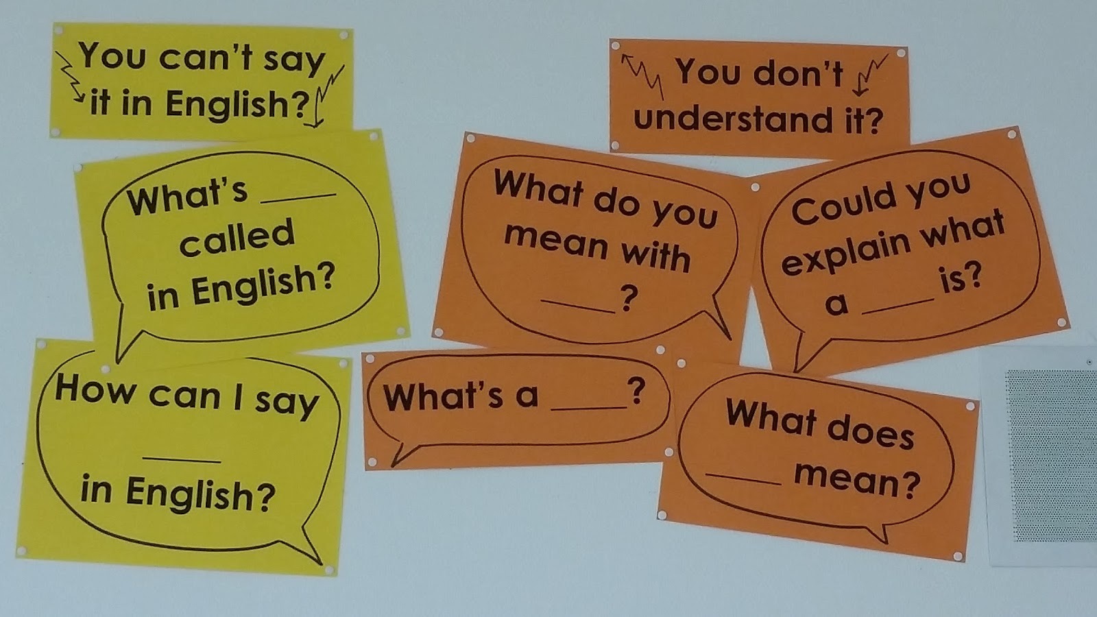 In this example, you clearly see two functional tools and speech bubbles with sentence frames in them to help learners ask for clarification. What will your classroom look like?