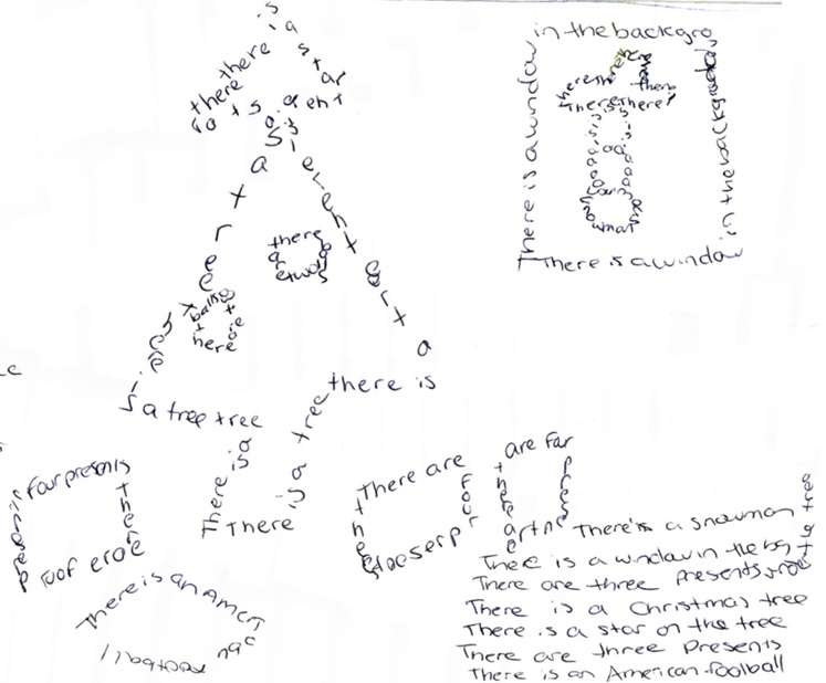 - A picture dictation in words, eg. write "there is a tree in the middle of the picture" in the shape of a tree;